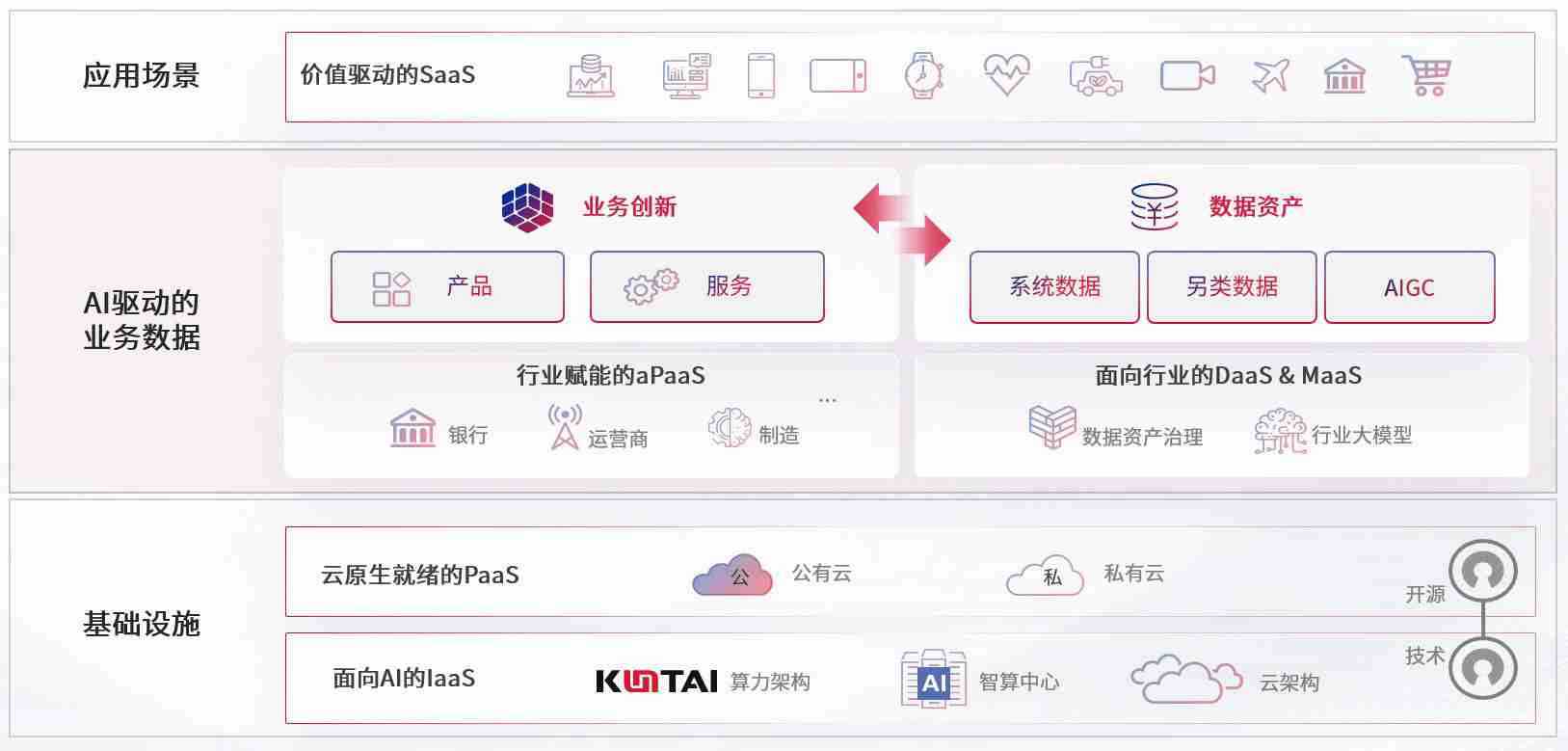数字时代,,,围绕企业数字化转型的关键要素,,PA旗舰厅数码开创性的提出数云融合战略和技术体系框架,,着力在云原生、、、、数字原生、、、AI原生和信创产业上架构产品和服务能力,,,为处在不同数字化转型阶段的快消零售、、、汽车、、、、金融、、医疗、、、政企、、、、教育、、运营商等行业客户提供泛在的敏捷IT能力和融合的数据驱动能力,,,,构建跨界融合创新的数字业务场景和新业务模式,,助力企业级客户建立面向未来的核心能力和竞争优势,,全面推动社会的数字化、、智能化转型升级。。